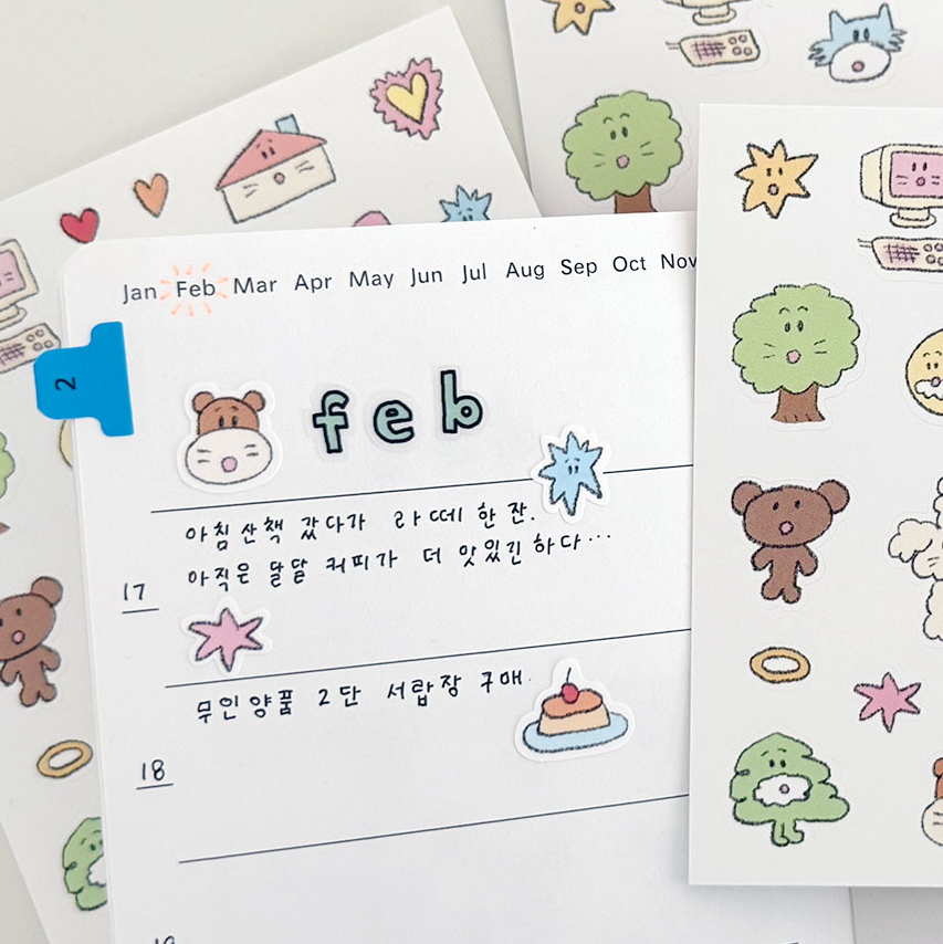 Matte coated Yupo paper stickers featuring Scooty Club.Durable, smooth, and perfect for daily journaling and planners.Two sheets included.